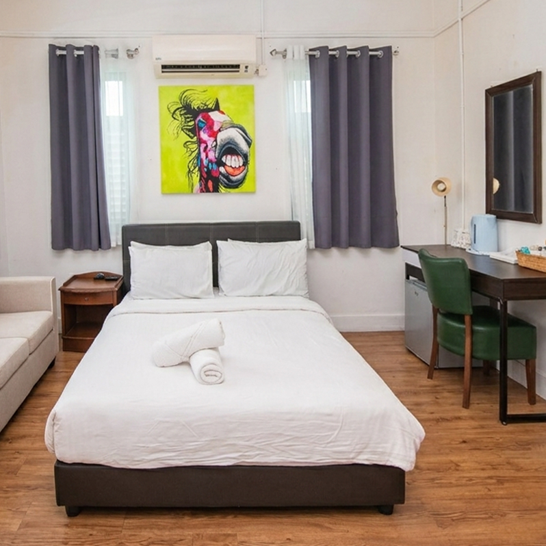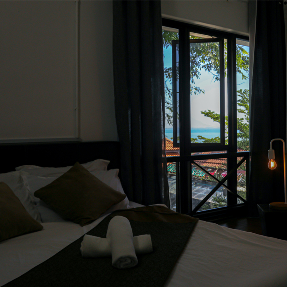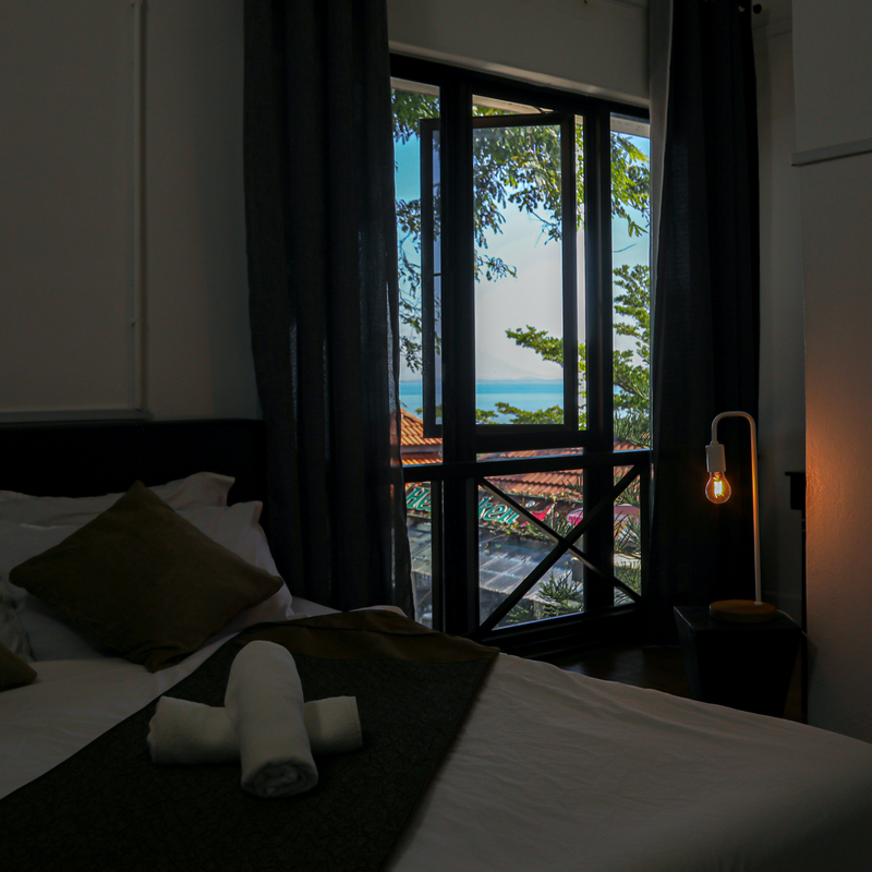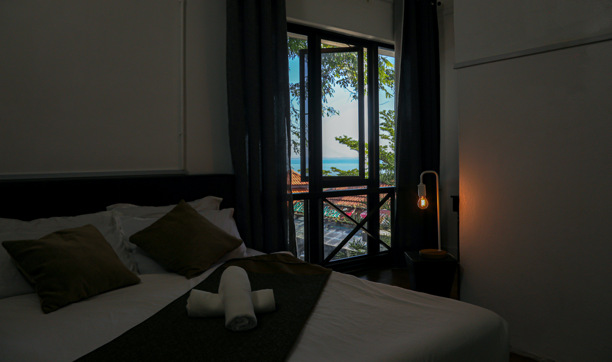 Wake up to panoramic views of Penang’s coastline. Featuring floor-to-ceiling windows, modern décor, and a cozy lounge space—this suite is made for those who want the best of seaside living.